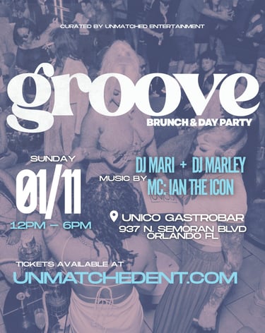 Unmatched Entertainment is an Orlando based events brand known for creating some of the city’s most engaging social experiences. From signature experiences like Rum Shot and Groove Brunch to high energy nightlife events and creative collaborations. We design moments that bring people together through music, culture, and connection.