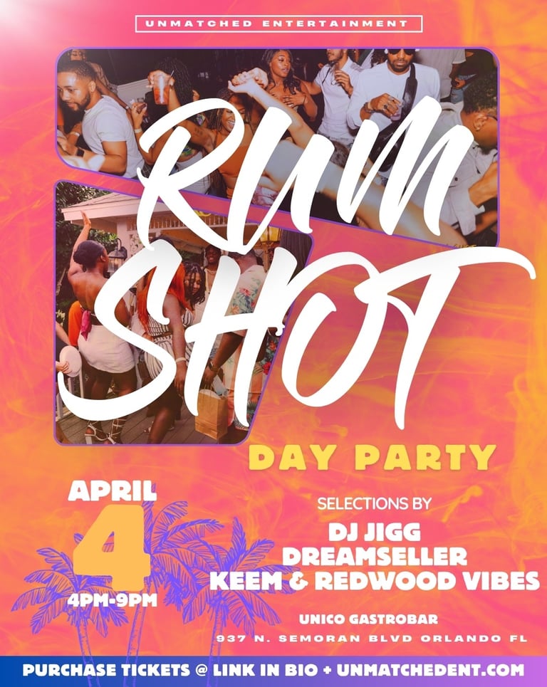 Unmatched Entertainment is an Orlando based events brand known for creating some of the city’s most engaging social experiences. From signature experiences like Rum Shot and Groove Brunch to high energy nightlife events and creative collaborations. We design moments that bring people together through music, culture, and connection.